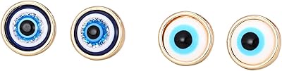 2 Pairs Lucky Evil Eye Stud Earrings Set Blue Round Protection Kabbalah Amulet Turkish Retro Religious Jewelry for Women