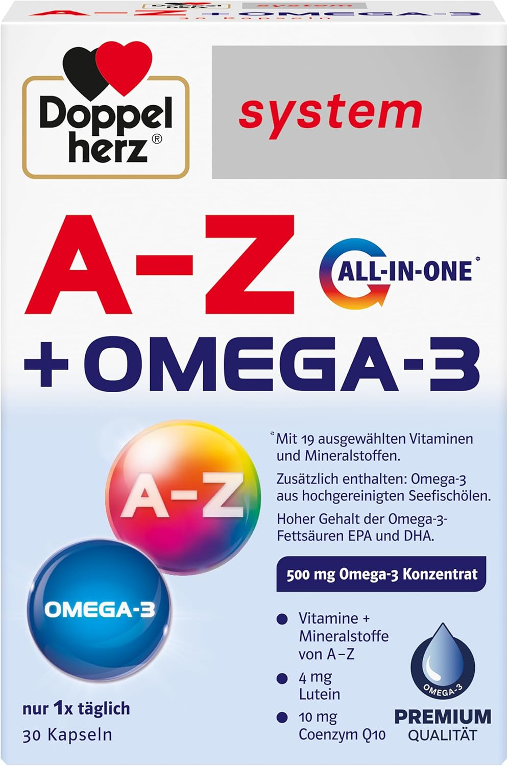 Doppelherz system AZ OMEGA-3 ALL-IN-ONE – 19 vitamins and minerals PLUS Omega-3 – 30 capsules